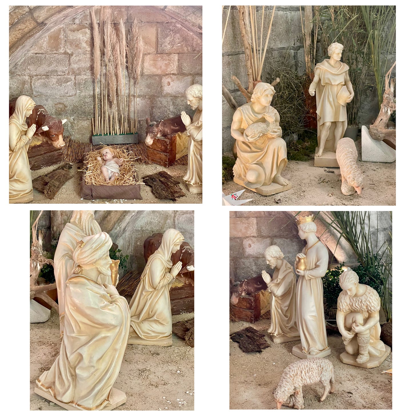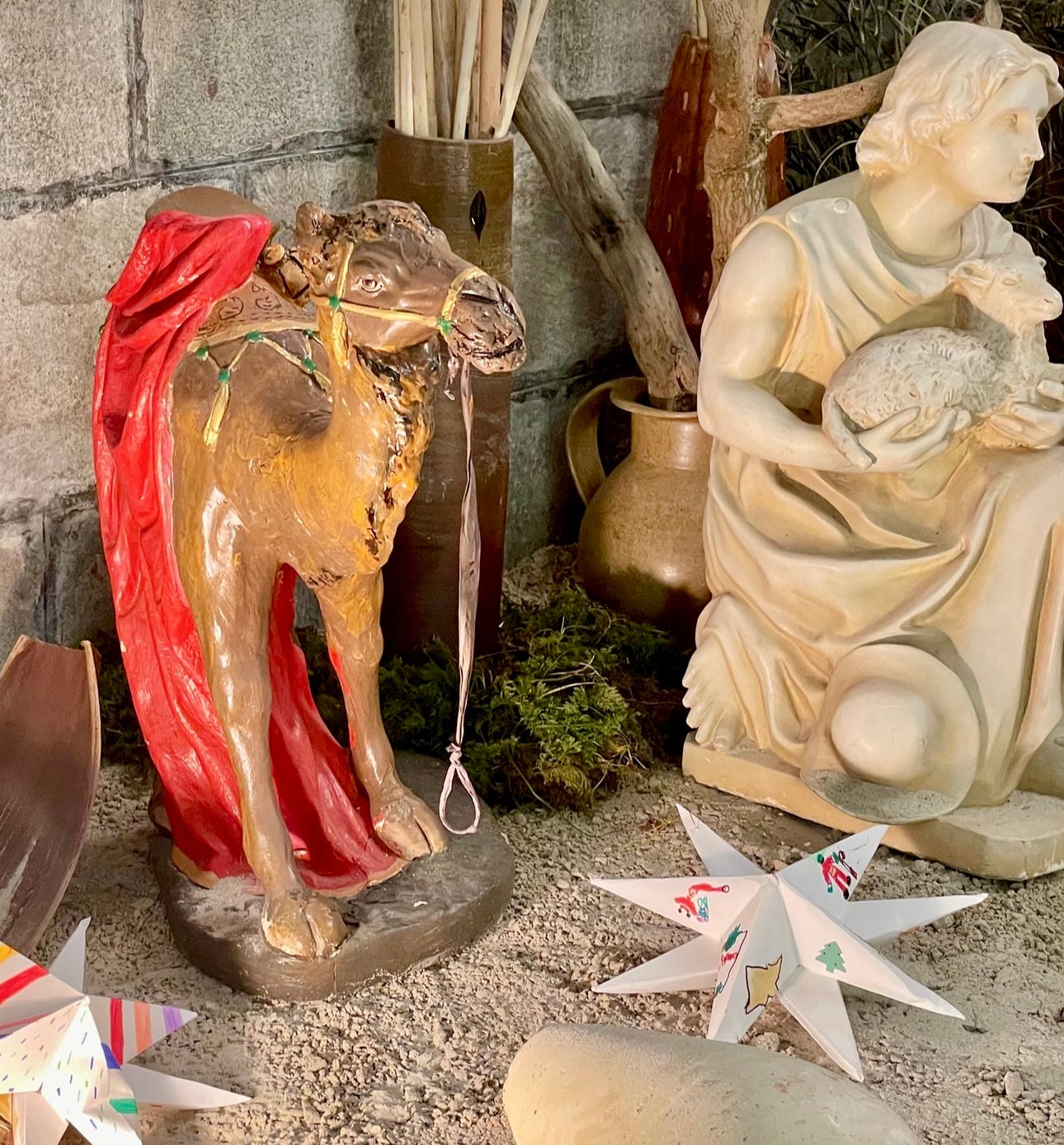 The crib in the Cathedral of St Pol de Leon, Brittany. It is on display until Candlemas. I particularly love the Ox and Ass, though I think the real star is the Camel.