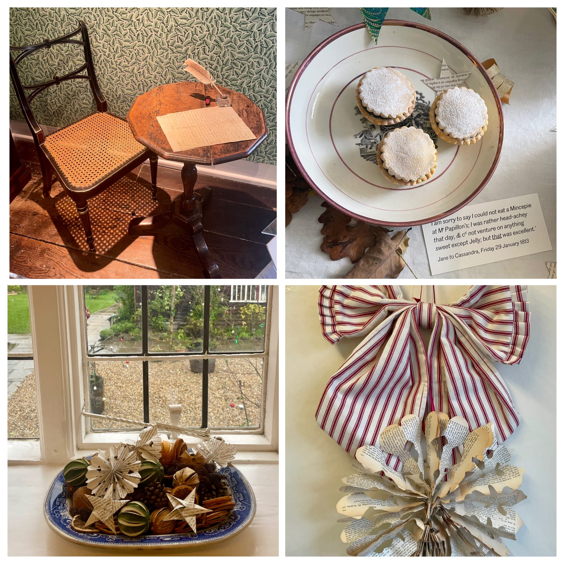 One highlight from December was a weekend away, with my bookclub, for our Jane Austen 250th Birthday celebrations. We visited her grave in Winchester Cathedral and the home she shared with her mother, her sister Cassandra and their friend Martha Lloyd, in Chawton. It is incredible to see the little table where she sat and wrote, with a quill pen, producing six of the most wonderful and influential novels in the English Language.