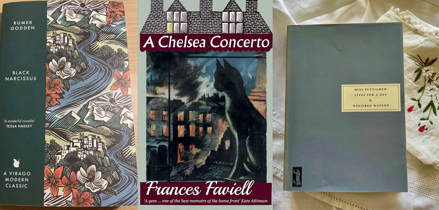 I’m not sure in which order I will read the books, but for January these are the three I have chosen, Black Narcissus, A Chelsea Concerto and Miss Pettigrew Lives for a Day.
