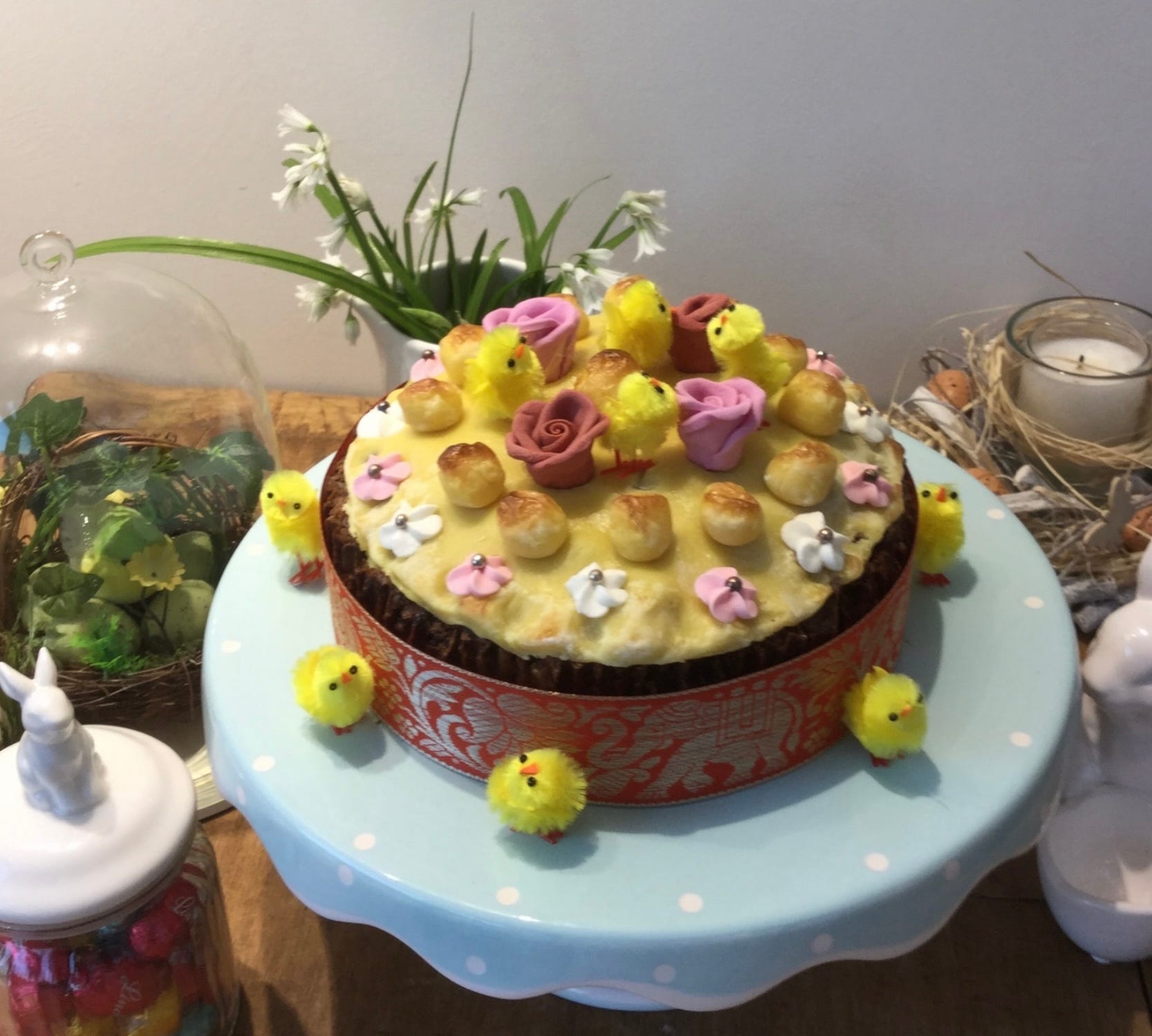 Traditionally (so the story goes) the cakes were baked by the Cook (in old country houses) then taken, by the young under-maids and footmen, on their half day holiday, Mothering Sunday, as a gift for their mothers. The cake was then stored carefully to be eaten by the family on Easter Sunday.