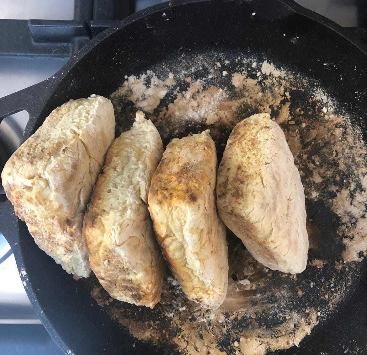 (Sealing the edges of the Farls, once cooked I flip them onto their sides, and cook each side for a few moments!)